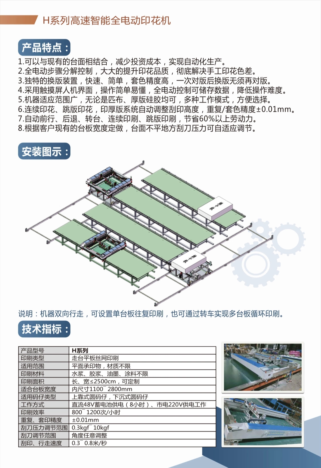 4.快速高效,印花机 一分钟可以20刮刀,每小时800—1200次持续不间断运行,生产效率得以大幅提升。