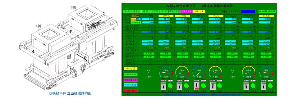 5. 精准下料,节约生产成本,开机生产时选择需要生产的配方,皮带秤将按照设定流量自动下料,中途如果出现断料,系统将对产生的误差进行自动补偿。以下为双联散料秤控制操作界面。