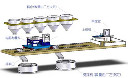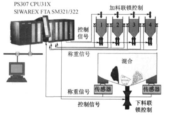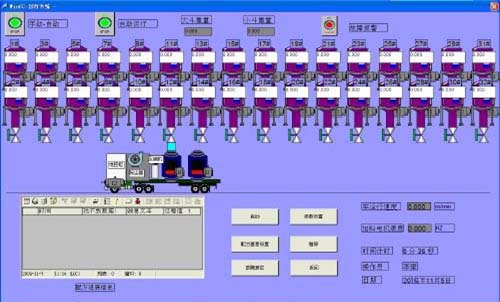 耐火材料的生产工艺是将各种称量好的原料进行混合后,在混炼机中进行混炼。为了提高产品的质量和合格率,在生产过程中配料和混料过程就显的尤为重要。由于工作人员进行配料操作时难免会产生较大的人为误差并且操作耗时较多,对企业提高生产率很不利。采用耐火材料配料计算机监控系统就会解决这些问题。此系统在小车的上方有24个料仓,每个料仓存储一定量的原料,系统通过控制料仓的阀门可以进行放料的操作;小车的下方有4个排料口,通过这4个排料口我们可以把配好的料放入混料仓中进行混料,然后便可以把混好的料送入混炼机中进行混炼。