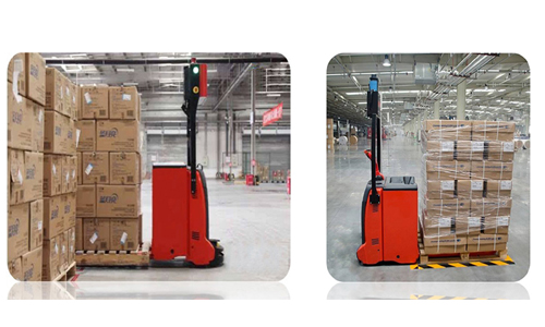 该类型叉车AGV适用于栈板类货物搬运,大大提升了无人搬运的工作效率。