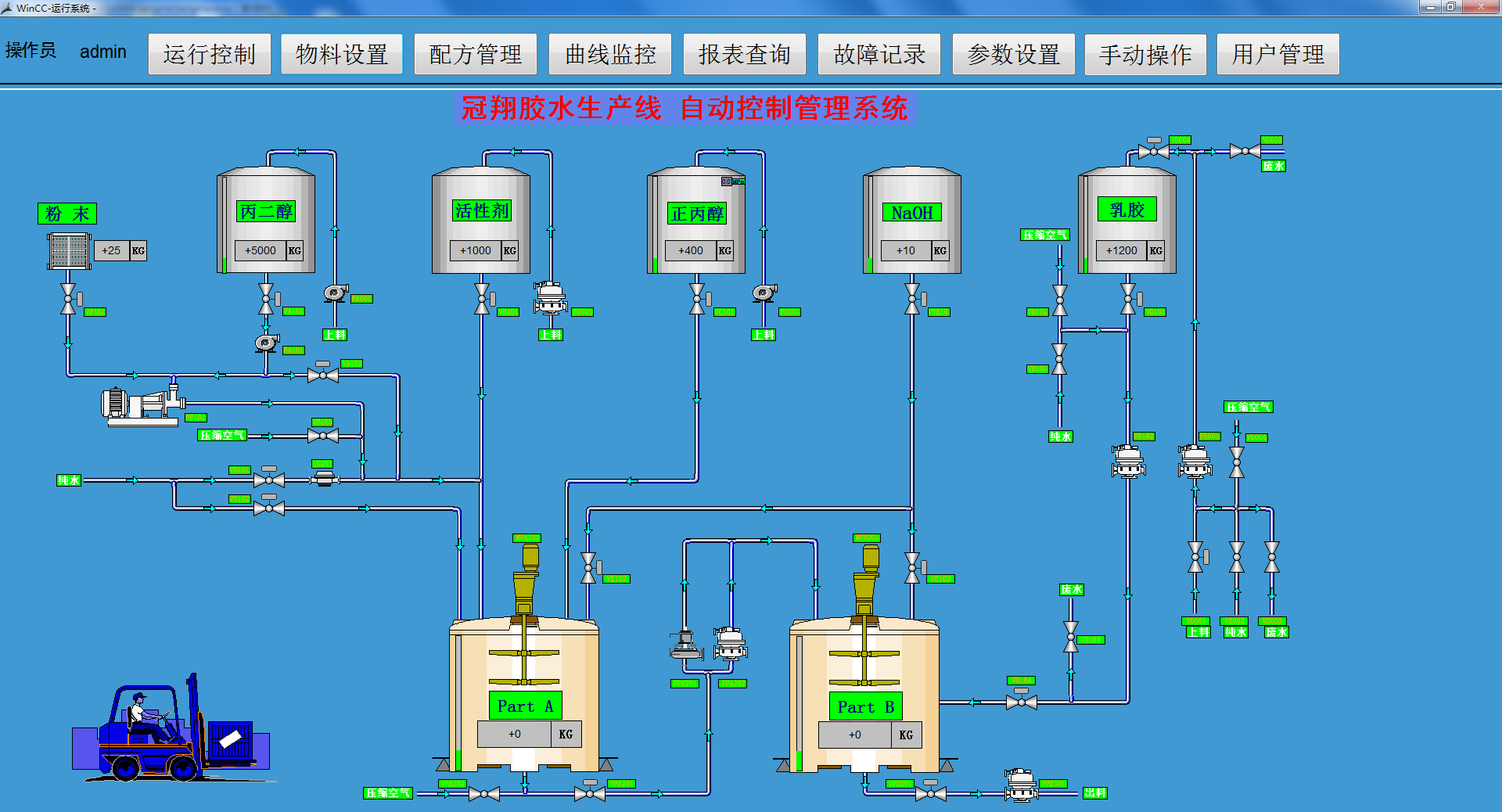 于2017年6月,我司在东莞市常平镇的东莞市冠翔电机有限公司顺利完成自动化胶水生产线调试工作。该司为丰田宝马奔驰等众多名车品牌的补胎胶供应商,出口欧美。该生产线包含自动配料系统、温控系统、PH值调节系统、自动清洗系统和备料防错系统,其中PH值调节系统能控制在0.2内,极大提高了产品品质。