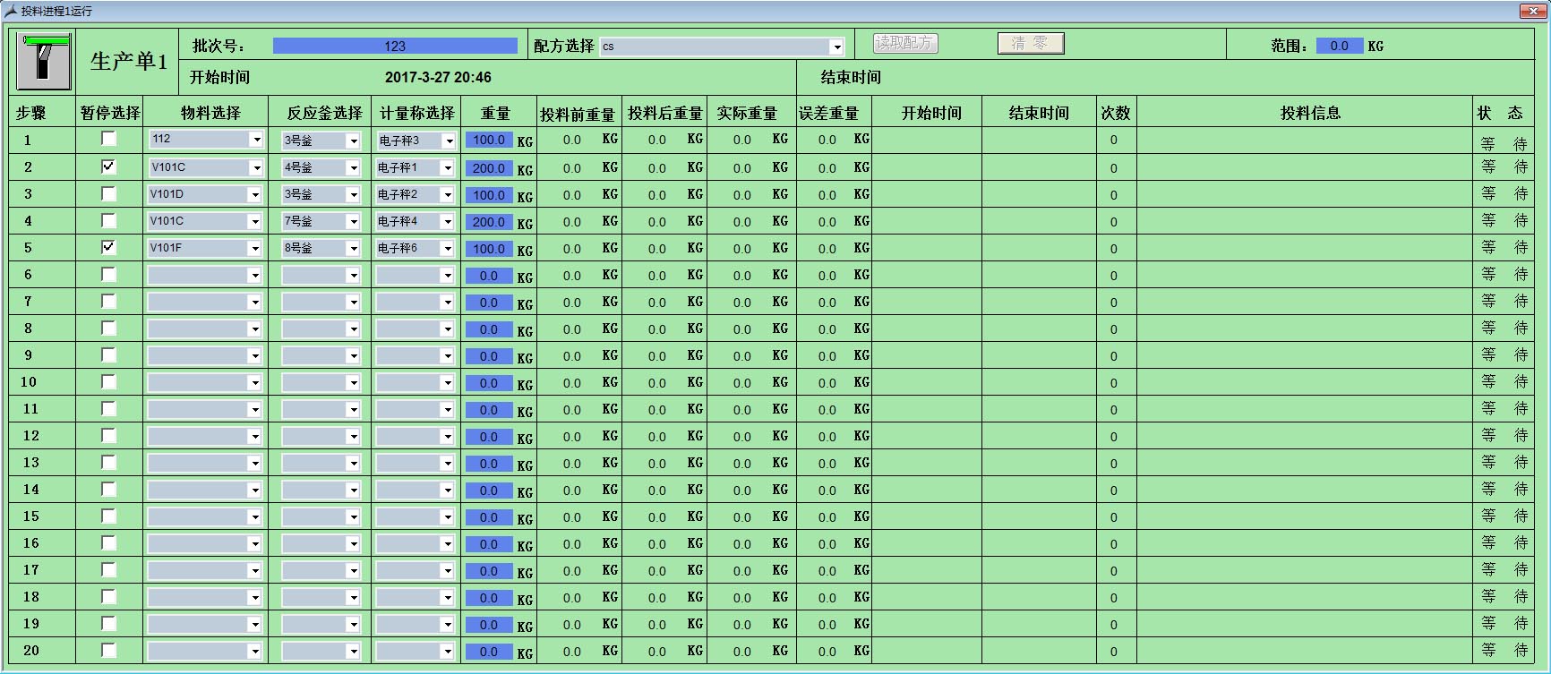 于2018年1月底,我司在佛山市顺德区的广东科德环保科技有限公司顺利上线阴极电泳涂料半产品投料管理系统。该系统可自动把生产配方单下发到每一台电子秤上,工人只需按照电子秤上的信息进行称重投料,系统能自动记录每次投料重量及产品信息,能有效防止投料出错,提高工人生产效率。